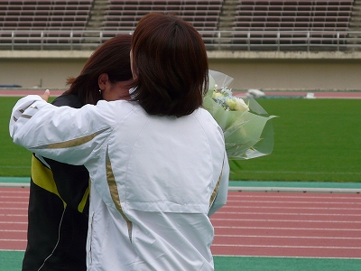 スーパー陸上の引退セレモニーでも、「自分では泣くとは思っていなかった」が、涙目の早狩とリレーメンバーたちに花束を渡されると、またも涙が頬を伝った。