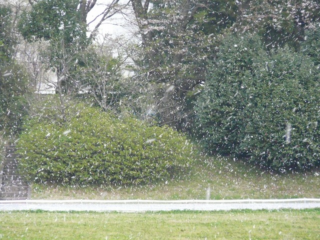 雪が積もっています。開催できるのか心配になり、7時少し前に平成国際大・松田監督に電話で確認。午後には気温も上がるということで、開始時間をずらして実施する見込みだと教えてもらいました。
