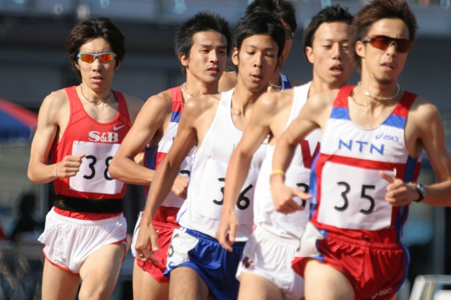 350m付近。NTNの後輩の大西毅彦がペースメーカーとして先導し、小林は4番手につけた |