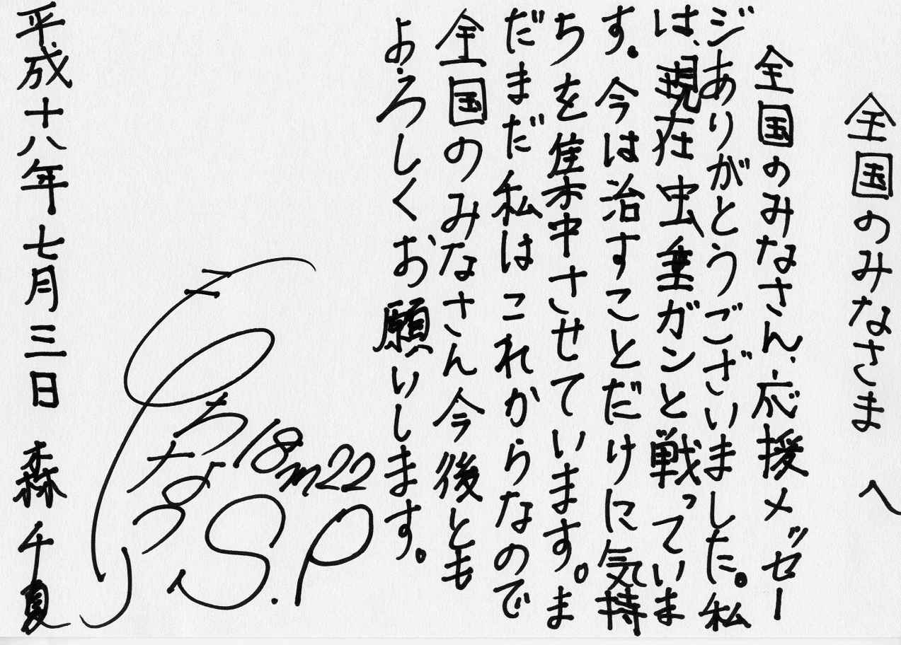 森千夏選手直筆お礼状)をしたため、これからも頑張ると決意を表明してくれていたのですが…。